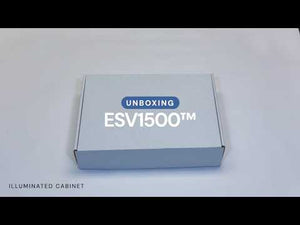 L'ESV1500 est contrôlé par une télécommande infrarouge sans fil ou par le bouton situé sur le côté de l'armoire éclairée. Contient également une zone de stockage à l'arrière pour stocker les graphiques. Des supports au sol en option sont également disponibles. Peut être alimenté par une batterie en option.